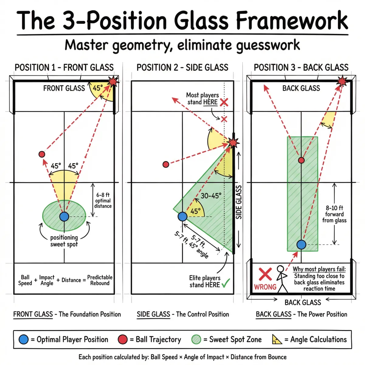 Position 1 - Front Glass: Where to stand, when to move, how to read the rebound angle